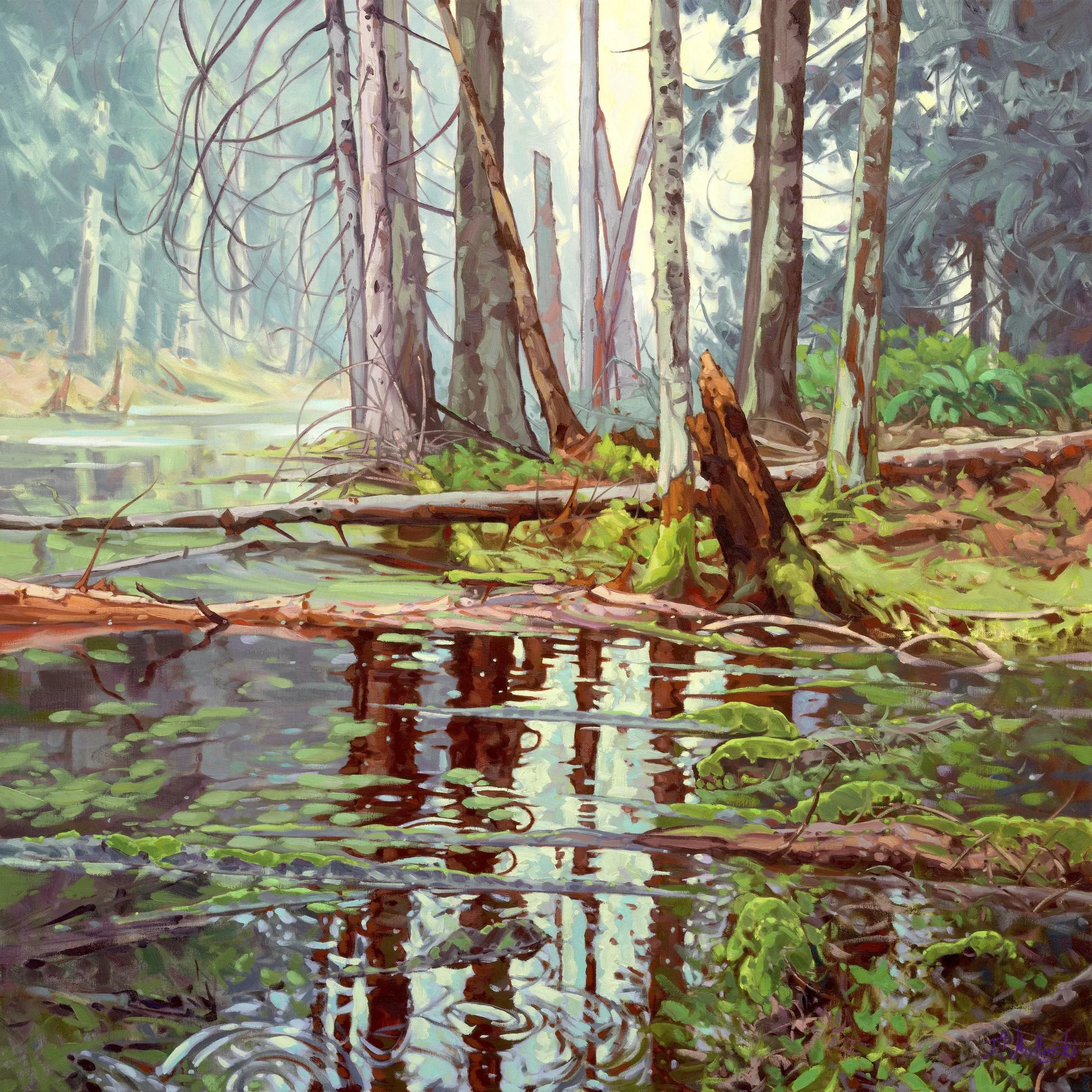 I’ve just completed this new painting, inspired by a quintessentially Canadian landscape scene. The northern wetlands are not only beautiful, but also vital—sustaining wildlife and safeguarding the health of our waterways. Stretching like a vast green blanket across Canada’s central and northern reaches, the boreal forests and wetlands form one of the largest intact ecosystems left on Earth.