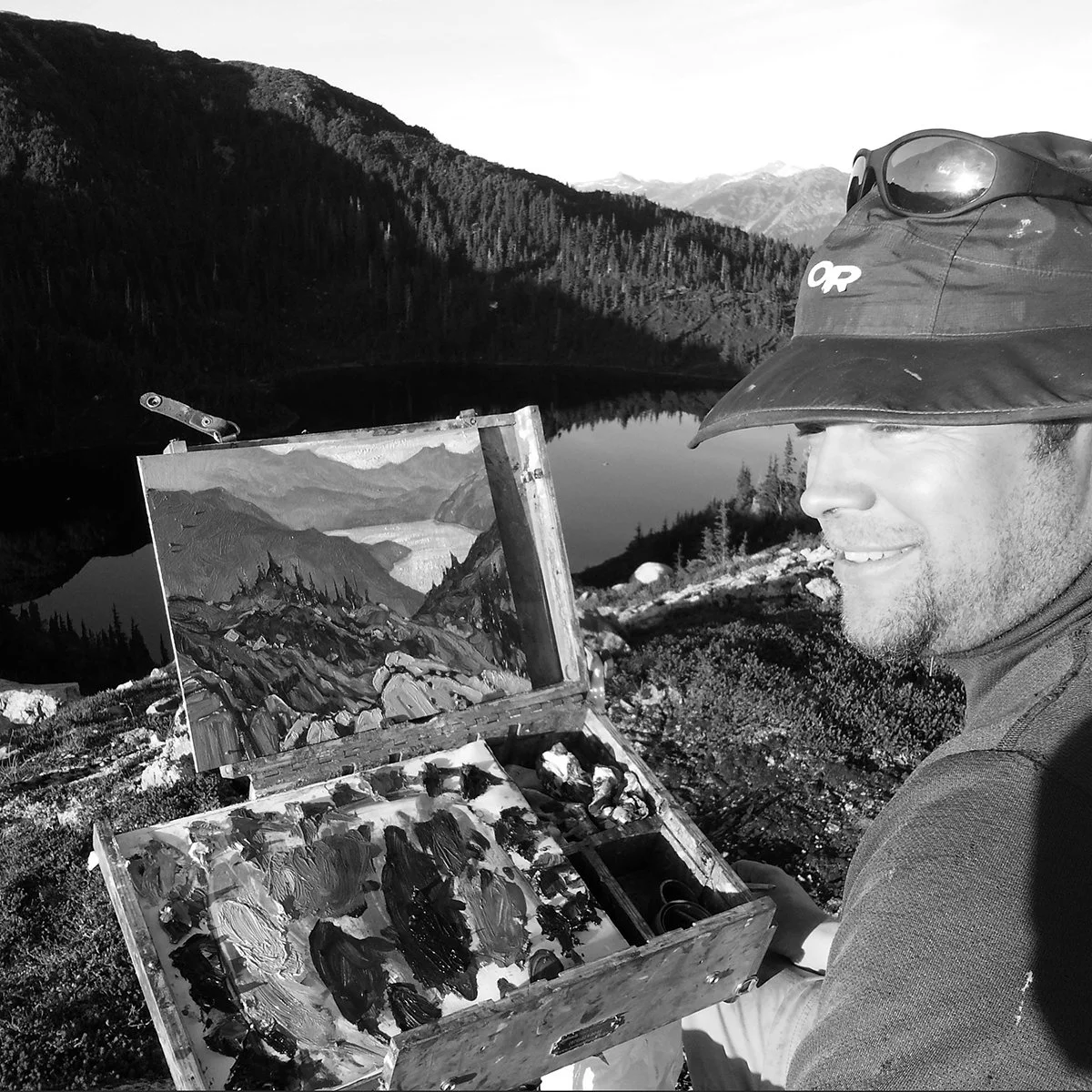 Dominik painting plein air on the West Coast, Bella Coola, BC