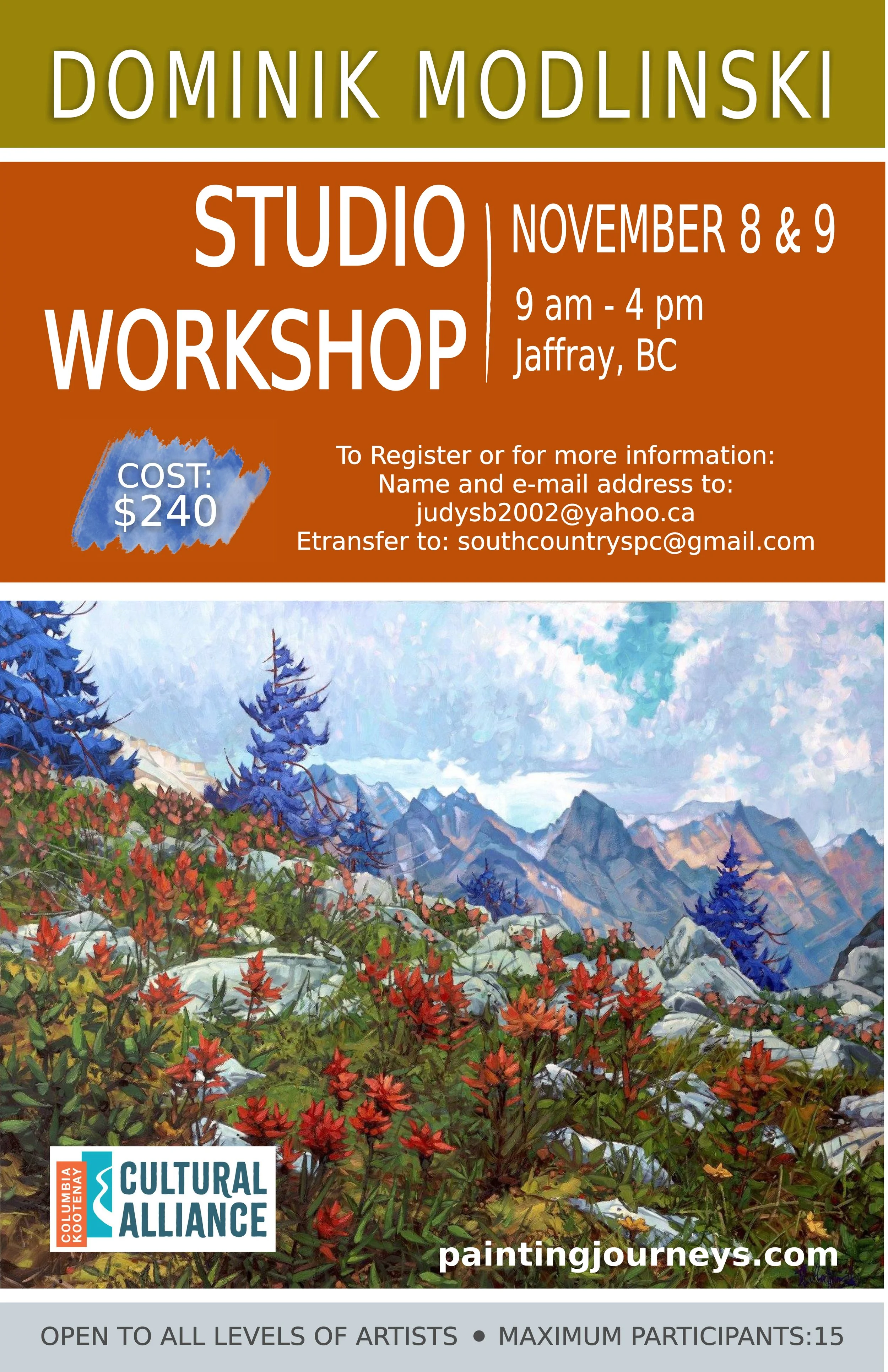 I attended 2 of Dominik's 3 day workshops in Calgary. I am not a professional painter as were many of those who attended the workshops so there is a vast range of difference in those who attend his workshops. I would not have come back a second time if I had not felt it was a wonderful learning opportunity.