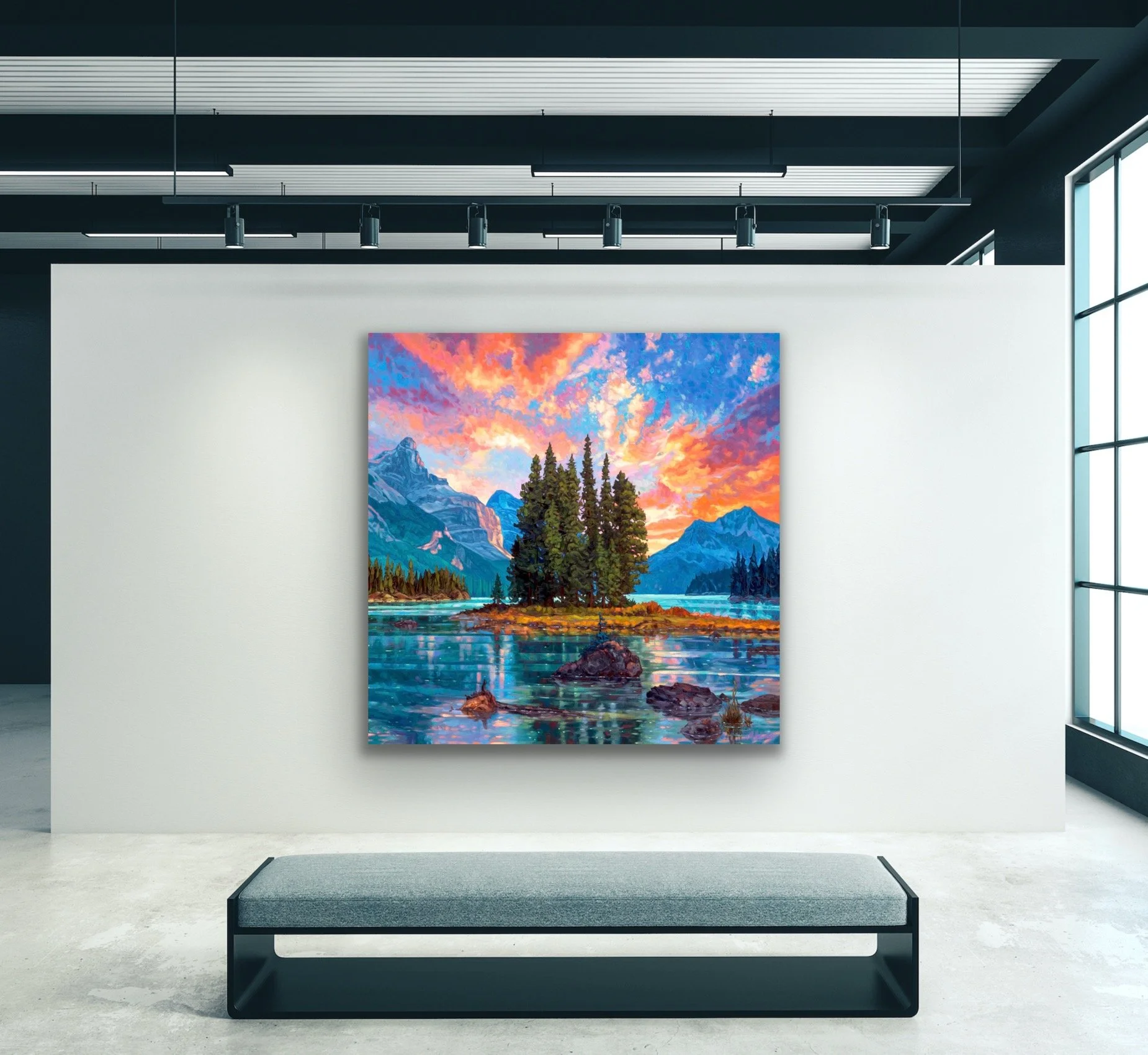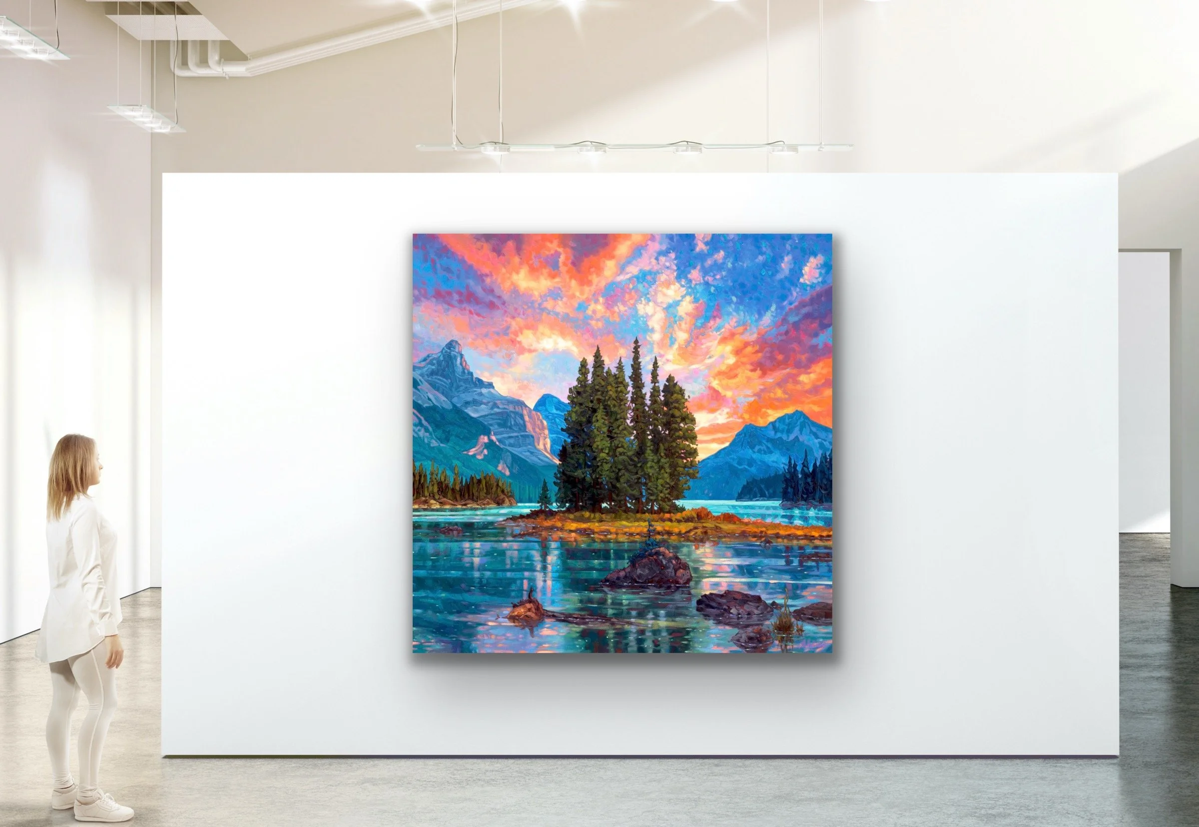 Print is made on Epson Exhibition Canvas Matte which is a bright white, consistent poly-cotton blend that is acid-free and pH neutral. Coated in semi-gloss varnish with black edges and stretched on kiln dried gallery stretcher 1.5" thick, ready to hang.