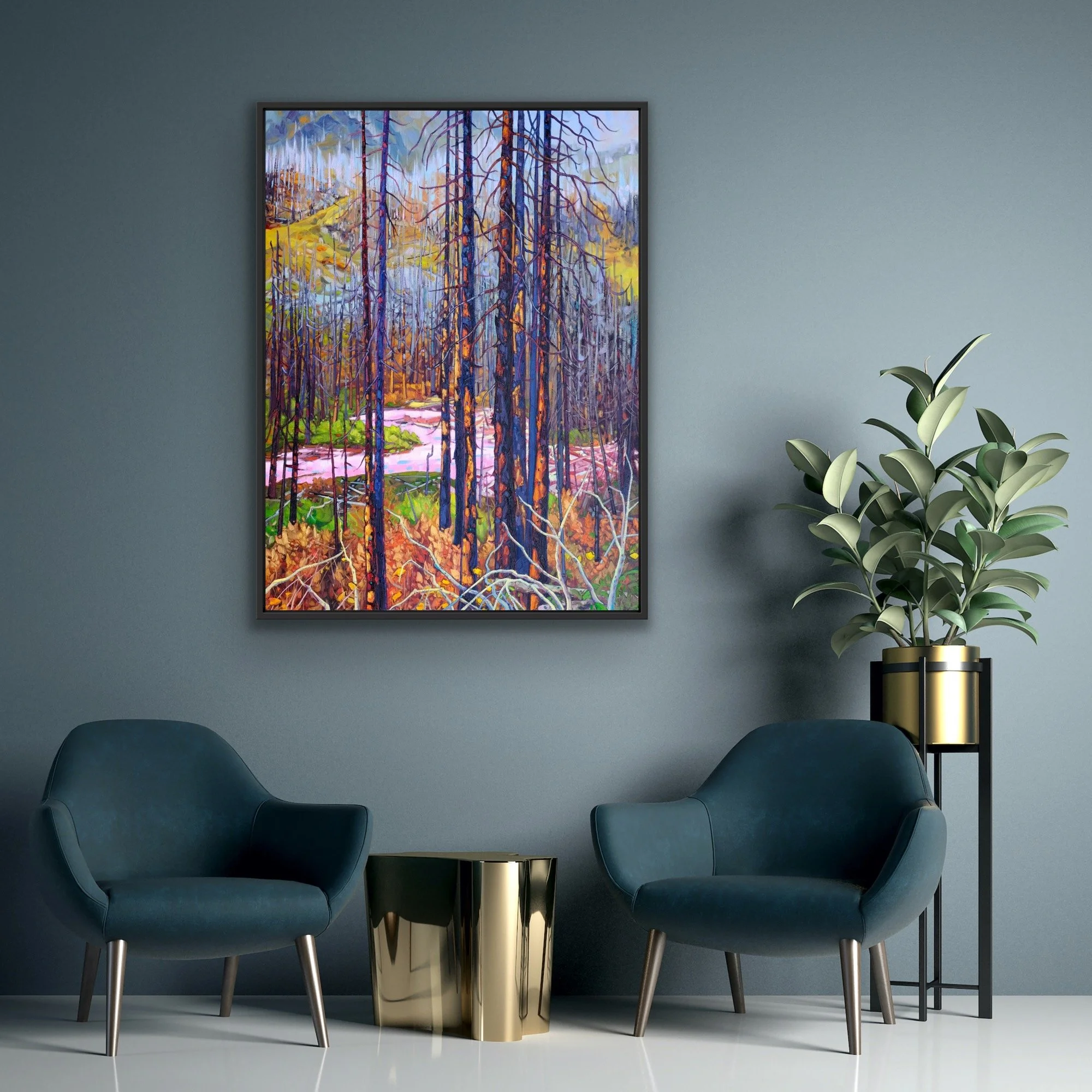 Original painting is based on the journey into central British Columbia. From devastating wildfires to fierce storms, nature shows its remarkable ability to bounce back and regenerate. Let's draw inspiration from its strength and learn how to nurture and protect our precious environment.