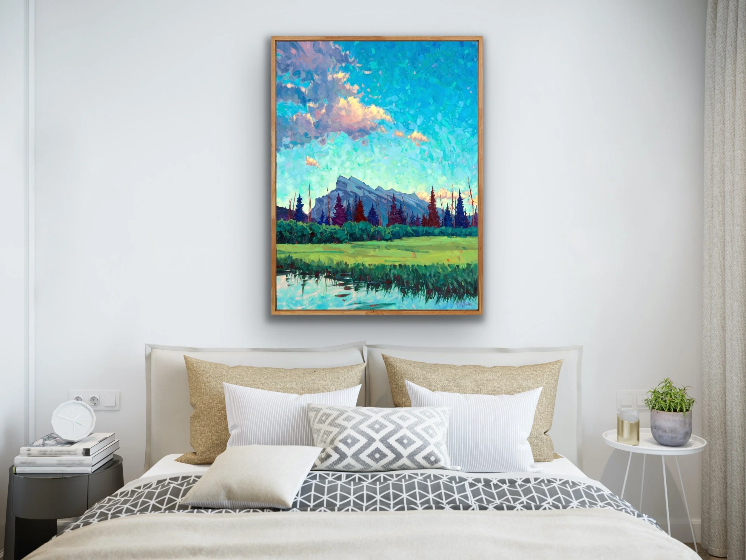 Print is made on Epson Exhibition Canvas Matte which is a bright white, consistent poly-cotton blend that is acid-free and pH neutral. Coated in semi-gloss varnish with black edges and stretched on kiln dried gallery stretcher 1.5" thick, ready to hang.