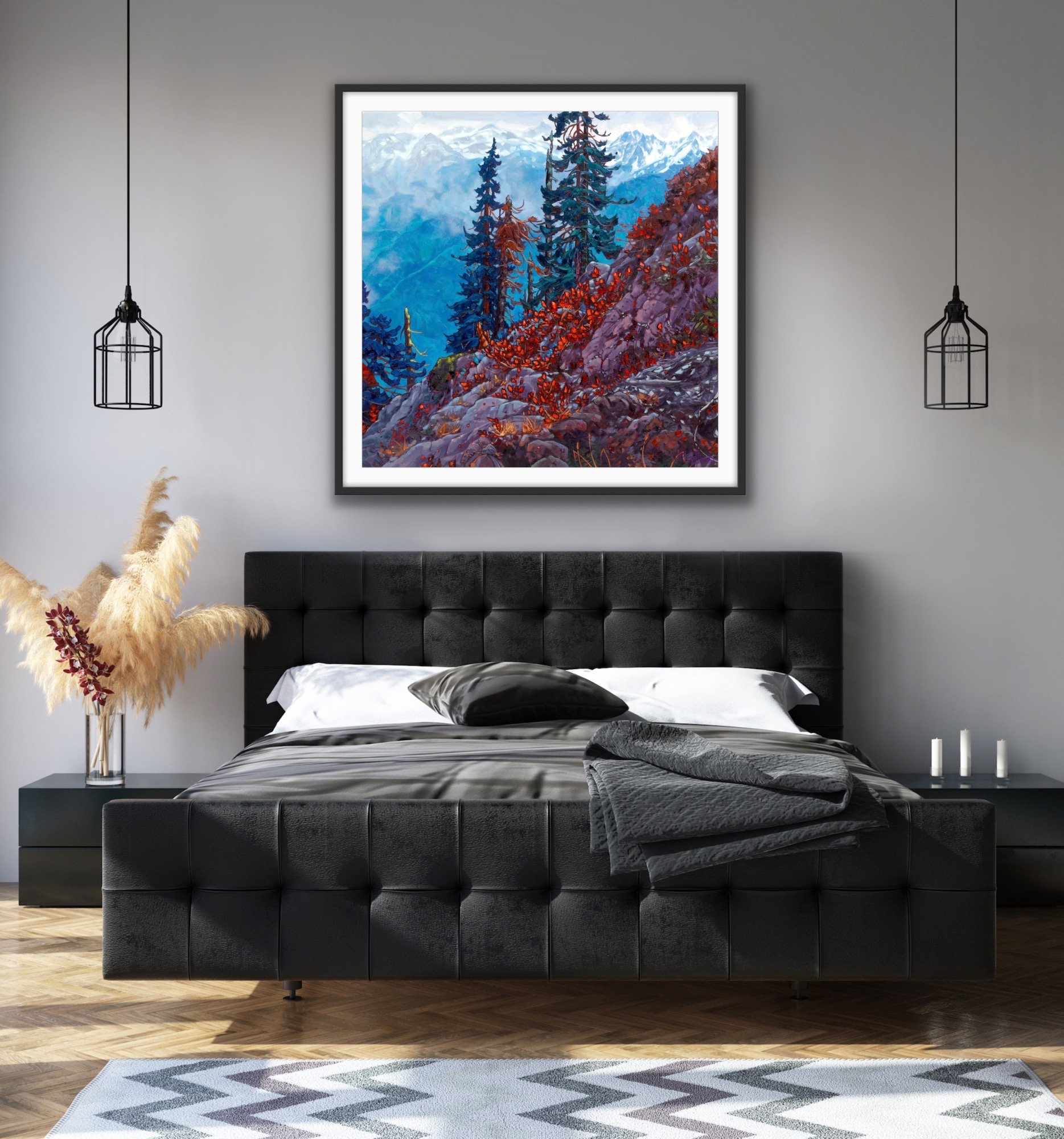 Print is made on Epson Exhibition Canvas Matte which is a bright white, consistent poly-cotton blend that is acid-free and pH neutral. Coated in semi-gloss varnish with black edges and stretched on kiln dried gallery stretcher 1.5" thick, ready to hang.